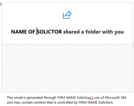 The scam emails all follow an identical pattern of sharing a folder from a named solicitor at a law firm.